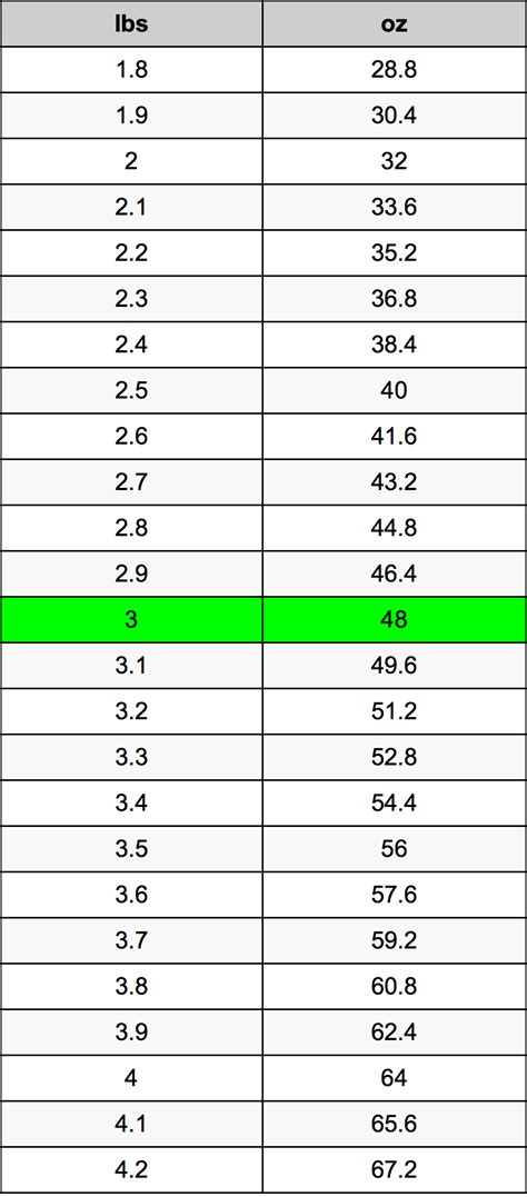 So for 3.3 we have: Language metric conversion > metric converter > weight converter > pounds conversion > pounds to ounces Web 1 pound (lb) is equal to 16 ounces (oz). A pound is defined as exactly 0.45359237 kilograms. So finally 3.3 lbs = 52.8 oz. The 3 lbs in oz formula is [oz] = 3 * 16.0. Web 3 pounds equal 48.0 ounces (3lbs = 48.0oz). 3 lb to oz conversion. To convert 3 pounds into ounces we have to multiply 3 by the conversion. Simply use our calculator above, or apply the formula to change the length 3 lbs to oz. Web 1 lb = 16 oz.
