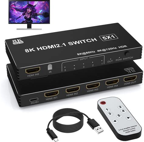 Hdmi 2.1 Switcher. With fiber cables (huaham) all 6ft no issues. You need to find the features you want to use and verify with the label on the device if it supports it.