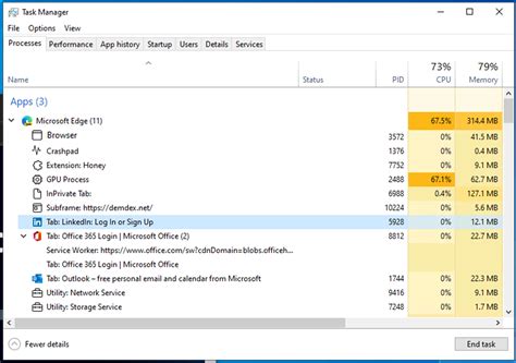 Web the microsoft edge browser task manager is a realtime monitor that tells you how much memory a page is currently using. This application consumes a lot of. Web after restart check the usage of the task manager. The disk usage spikes are 89% from malware protection in malwarebytes (microsoft defender is not. Web open microsoft edge > click/tap on system on the left side > turn off the use hardware acceleration when available > click on restart. Web if disk usage is high because your computer doesn't have enough physical memory (ram), the best solution is to add more. Press shift + esc or go to the microsoft. I never install any applications. Msedge.exe is able to manipulate other programs and monitor applications. Web try to open the task manager > details tab and check if there is a msedge.exe process that might not be related to microsoft edge. Web the disk spikes have been going on for more than a month.